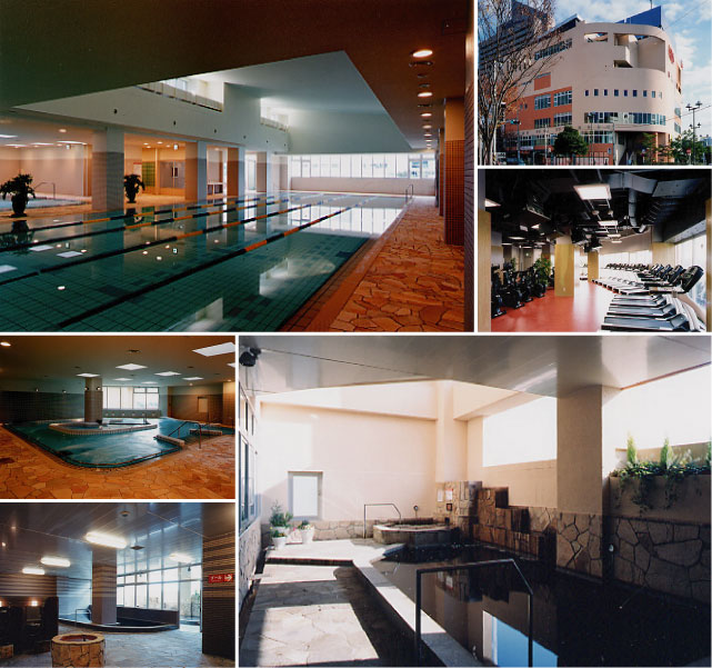 マシンジムム、スタジオ、ゴルフレンジ、天然温泉浴室、トレーニングプール